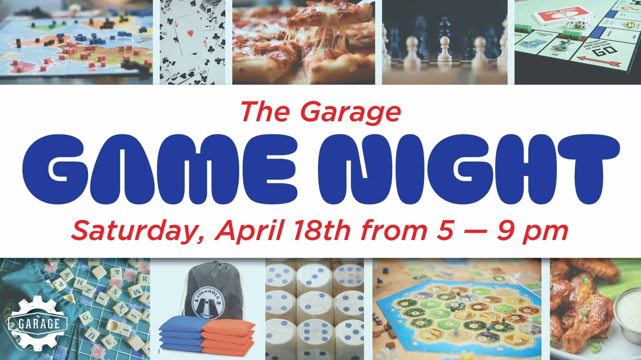 18apr5:00 pm9:00 pmFeaturedThe Garage Game Night5:00 pm - 9:00 pm